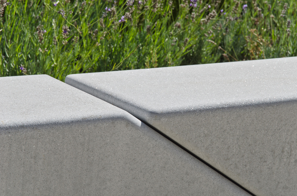 L’objet initial du projet était d’offrir un mobilier urbain inédit, dont l’identité contemporaine serait étroitement liée à l’aménagement de la place à Valladolid. Ce banc modulaire s’est imposé ensuite comme un système flexible pour d’autres espaces publics de la ville ou du paysage contemporain. Conçu à l’origine en un seul module réversible aux lignes brisées, il s’est adjoint un module droit, multipliant ainsi ses possibilités de combinaison. Reposant simplement sur le sol sans l’aide de fixations, les modules assemblés créent une limite fracturée, en continuité avec les plans inclinés de leurs jointures ouvertes.